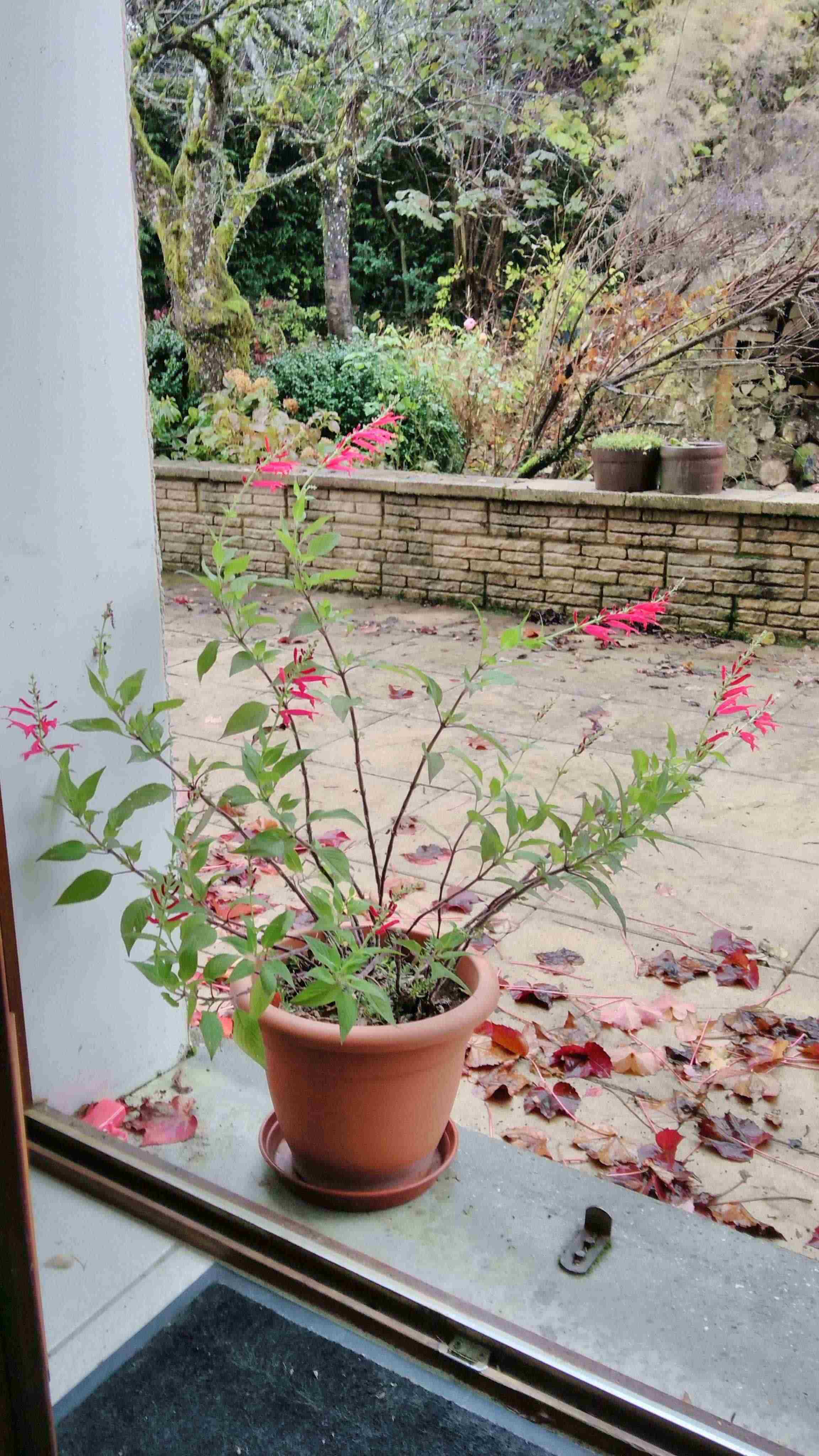 la sauge ananas est fleurie ! et je ne regrette pas d'avoir suivi le conseil de l'avoir rentrée à la maison pour en profiter .
