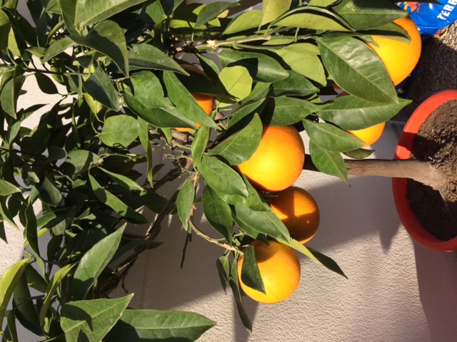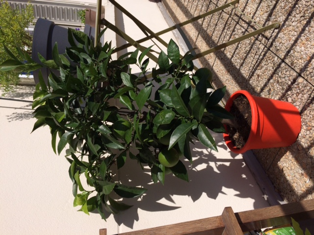l'oranger depuis l'année dernière cette année il a un dizaine d'oranges, mais je vais en enlever quelques unes car je le trouve trop petit pour autant de fruits
