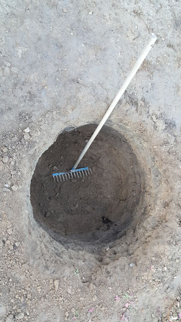 Cette fois, Deshojo est à la maison : Et le trou est presque prêt : J'ai creusé sur 1m de profondeur, et 1m de diamètre. Est-ce que vous me conseillez de creuser encore ? en profondeur ? en largeur ? les deux ?