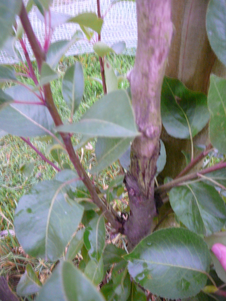 Le porte greffe peut être un poirier"franc" mais aussi un cognassier (feuilles plus rondes et plus claires).