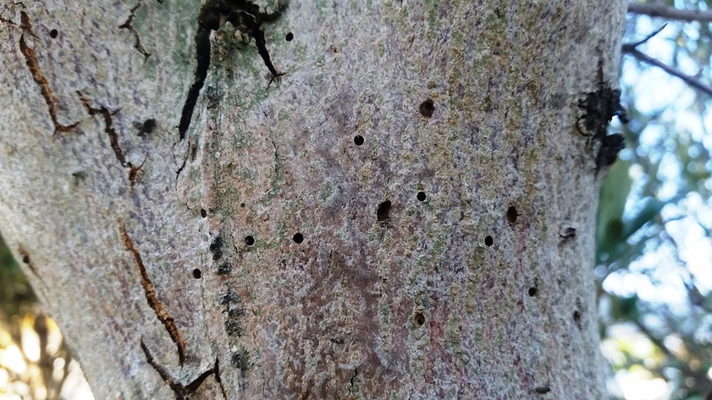 Aucune affirmation, mais j'aurais tendance à dire que votre olivier souffre d'un champignon qui facilite l’accès à différentes espèces xylophages, certaines parties de photo laissent supposer une écorce fébrile par endroit, voire mourante en dehors des piqûres et entrées de galeries. Il faudrait une photo d'arbre plus dézoumée et une de son ensemble. Bon après l'olivier est un des arbres les plus coriaces.