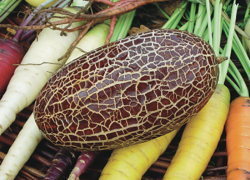 Le concombre du Sikkim est originaire du Sikkim. Il est un petit peu moins long, son diamètre est aussi un peu plus petit, donc son poids est de la moitié de celui présenté.