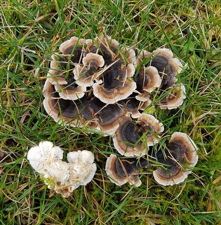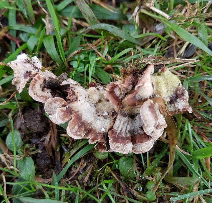 Trametes versicolor ici.Lippo a écrit :Celui-là pousse sur la pelouse; c'est toujours le même ?