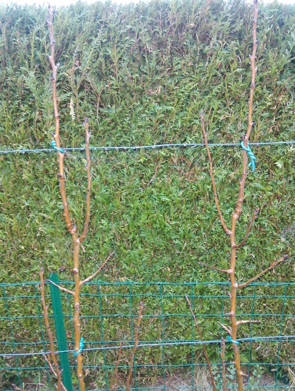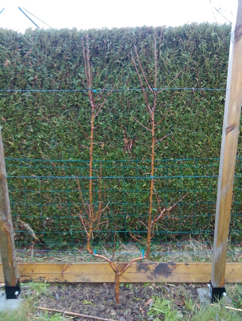 J'ai planté en février 2015, 2 poirier palmette simple U : 1 doyenne du comice et 1 conférence.