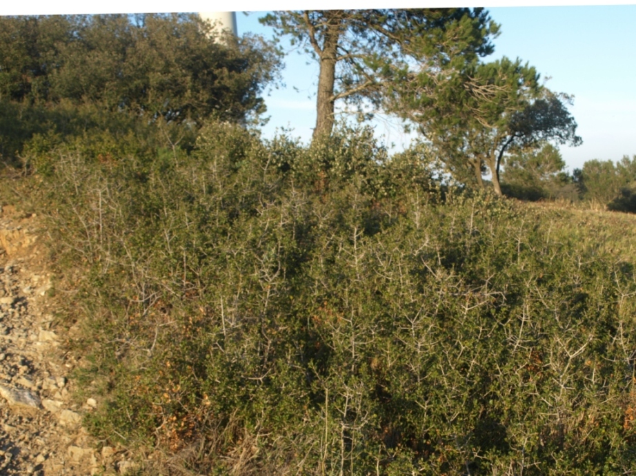 La végétation d'origine (un tapis de Chênes kermès rabougris) est débroussaillée ras.