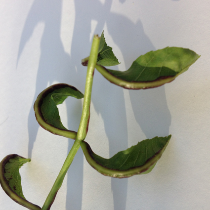 Nous avons un frêne à petites feuilles malade. Les feuilles sortent toutes jolies puis d"un coup quelque chose (de noir) attaque la nervure centrale et la feuille se replie sur elle même.