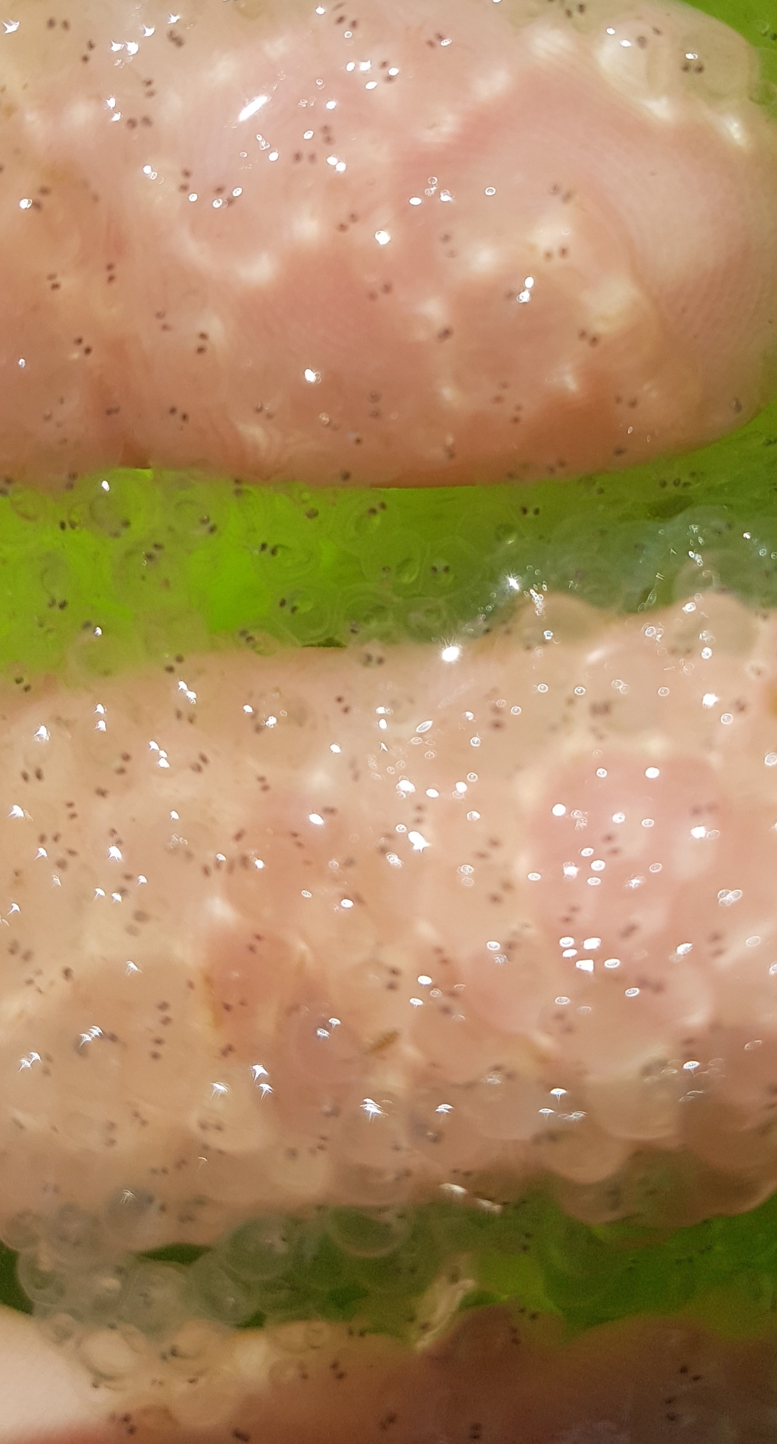 Je pense à des grenouilles et j'espère beaucoup, mais sur Internet tout les œufs de grenouille que je vois sont beaucoup plus gros en diamètre, mais aussi il n'y a qu'un point noir à l'intérieur et du coup je voudrais confirmation ..
