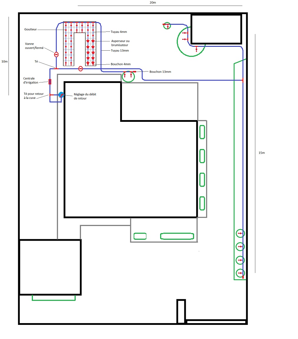 Je vais installer le goutte à goutte dans mon potager/jardin et j'aimerais avoir votre avis sur l'installation que je prévois (voir plan joint).