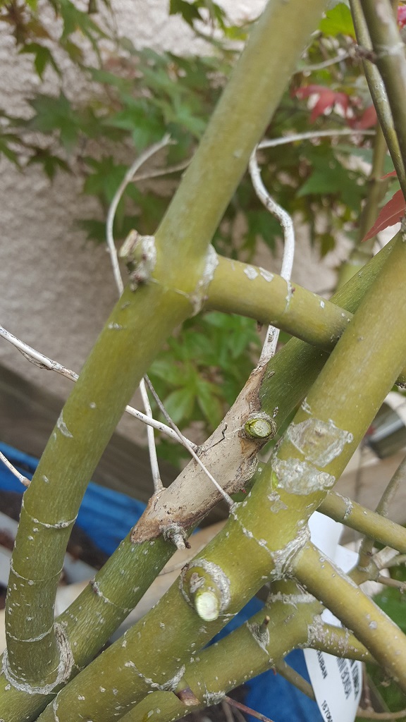 Je n'ai pas trouvé de section tâchée de brun ou noir ou tacheté. Que du bien vert sur les rameaux bourgeonnants.