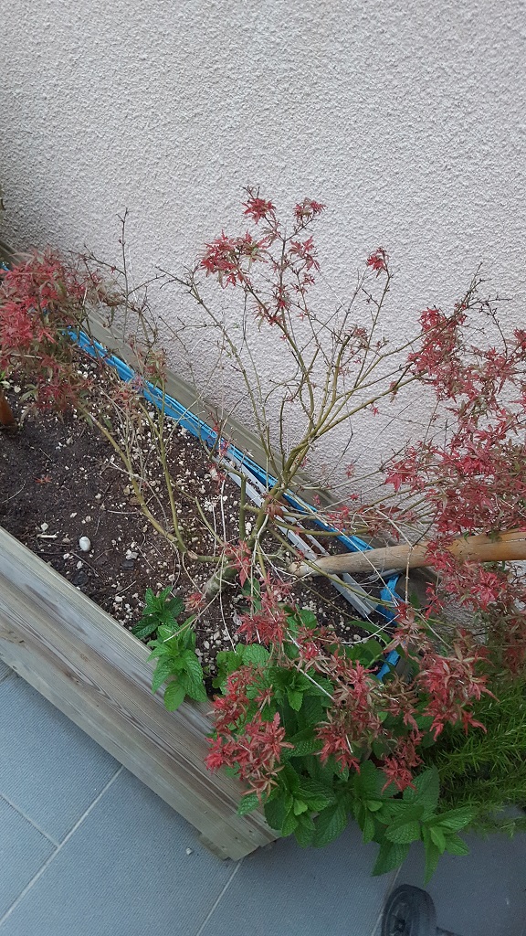 J'ai aussi une menthe bien grasse qui pousse au pied de l'arbre (visible sur la photo), je me demande si elle pompe pas trop de ressources... Si c'est le cas je vais devoir augmenter ma consommation de rhum pour l'utiliser plus vite et faire de la place à mon acer ^^