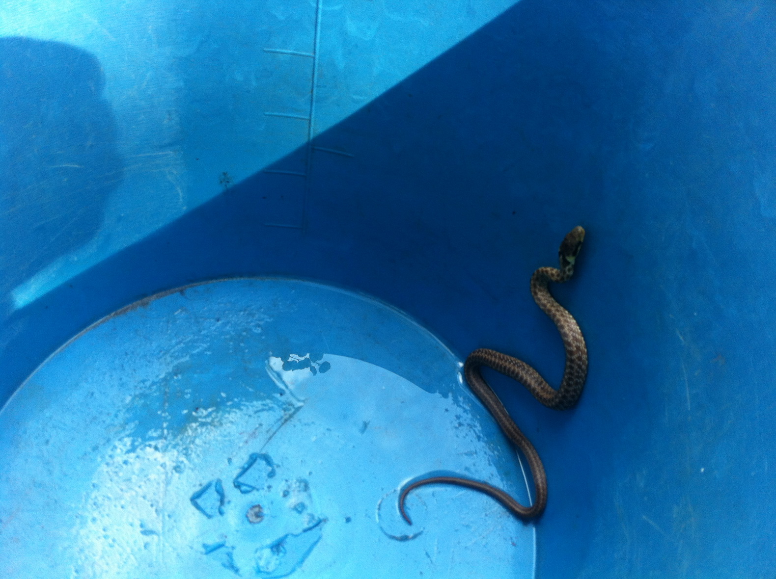 La petite couleuvre qui essaye de rentrer dans une vielle véranda.. vite attrapé et vite remise au abord du bassin