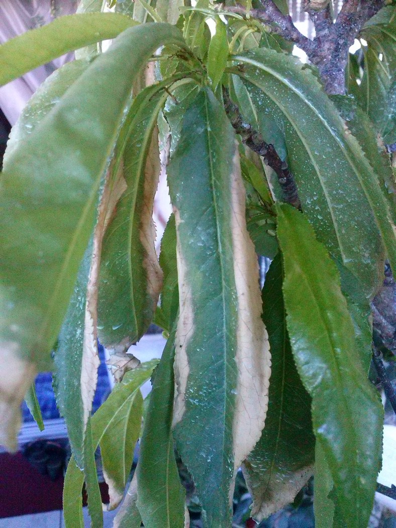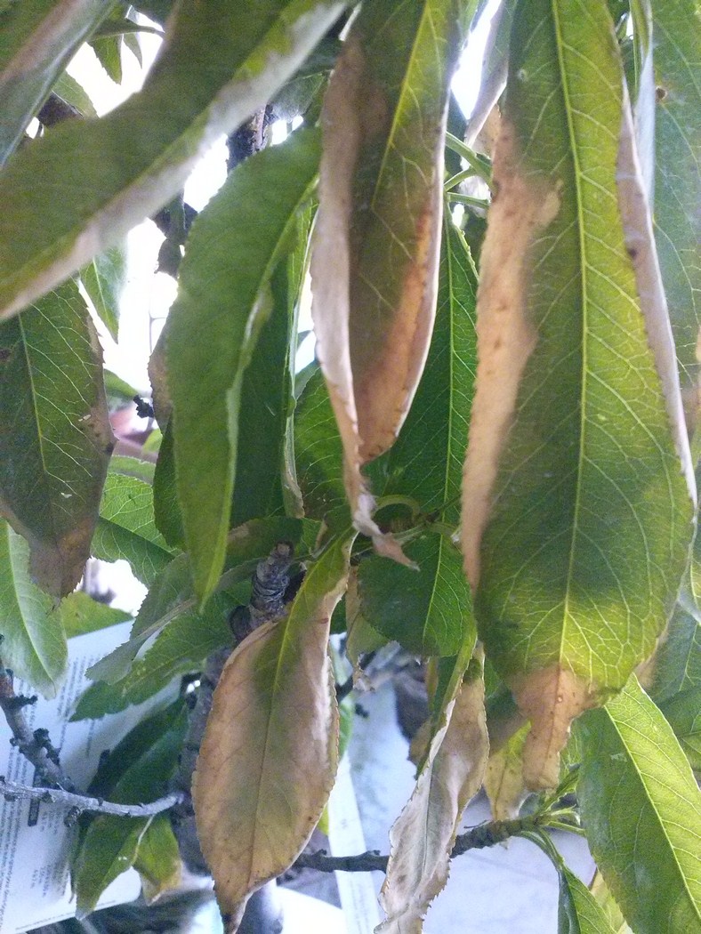 Le nectarinier est dans un pot de 40 x 40 et d'une hauteur de 60 cm depuis un an et contenant un substrat à base de terreau universel et de terre pour toutes plantes. Il avait bien poussé sans problèmes jusqu'à la semaine dernière ...