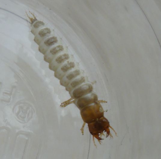 je pencherais pour une larve de Coléoptère carnivore , du style cicindèle ou carabe, mais plutôt de Carabe