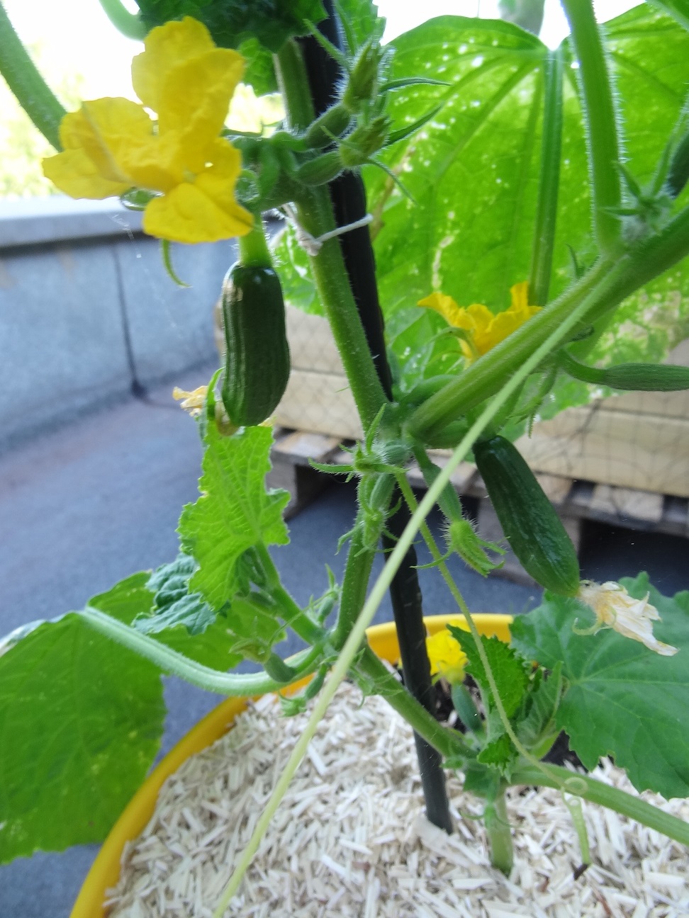 J'ai planté pour la première année ds ma serre des concombres que je fais pousser sur une corde pour prendre moins de place. Et je suis sidéré du nombre important de concombres ! Je les laisse tous car les plantes se portent bien… On verra ! Mais on en mange déjà depuis plusieurs semaines.