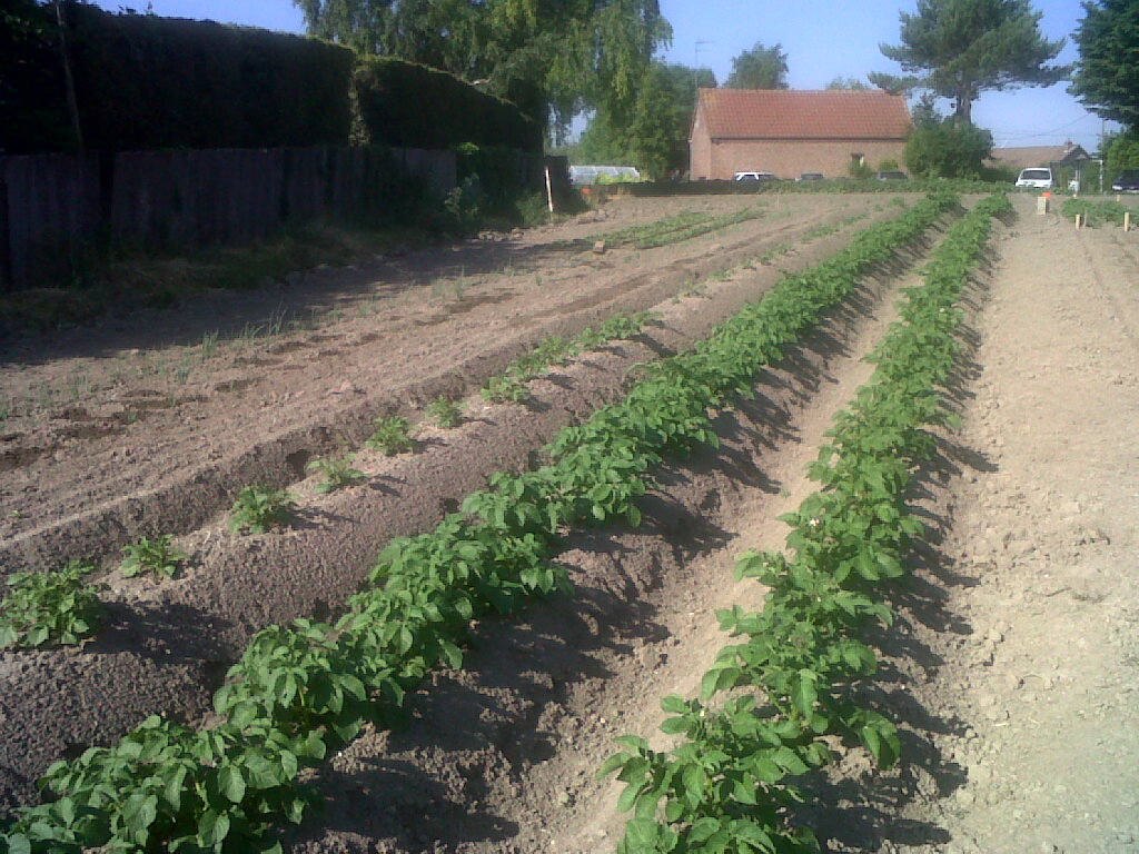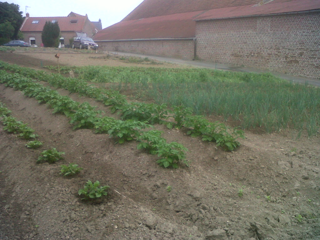 . :sleep: . aujourd'hui pas fait grand chose ,un peu d'arrosage et par curiosité arrachage d'un pied de pommes de terre Sirtéma nombreuses au pied mais reste a grossir :? .