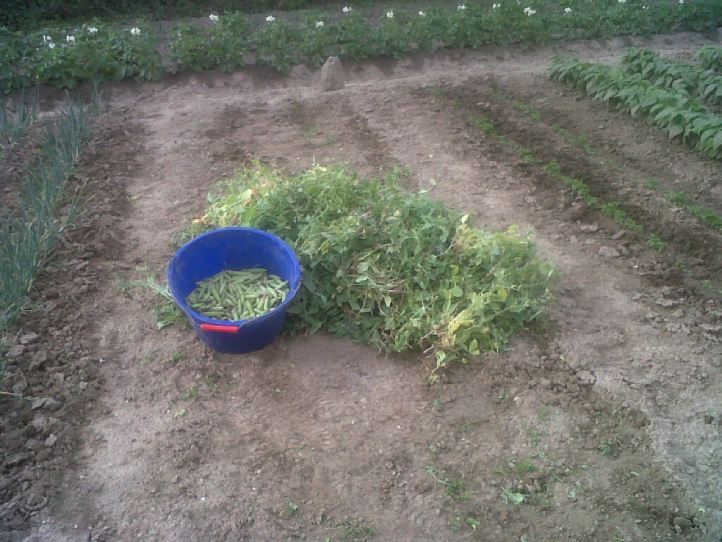 dans le petit potager ,bientôt cueillette de petit pois :D .
