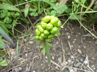 Je ne me souviens pas avoir vu un arum en fleur là mais c'est un coin un peu "caché", je vais le laisser et l'année prochaine, je guetterai.