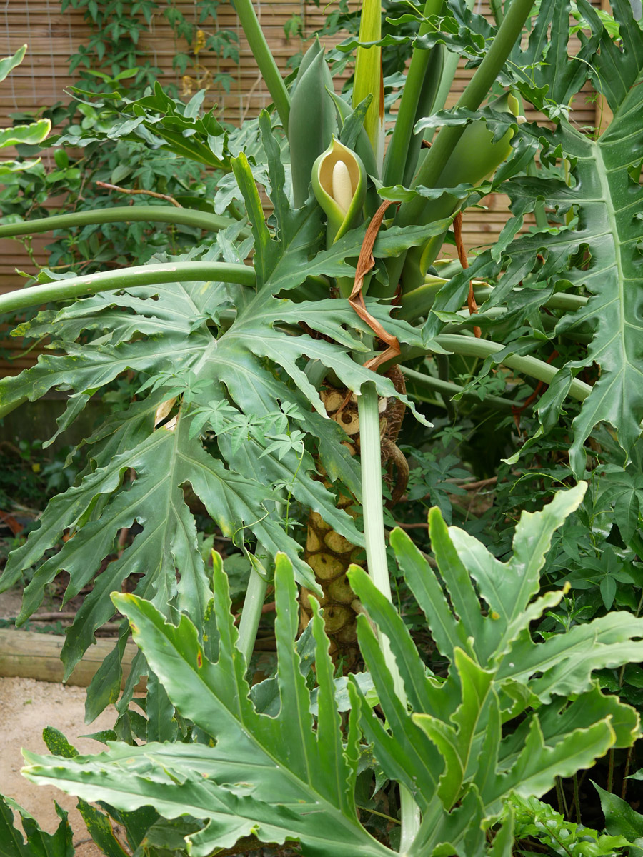 Je cherche à identifier cet arbre aux grandes feuilles très découpées. On voit une fleur au centre. Je l'ai pris en photo à l'intérieur d'une volière à papillons exotiques à Elne (66), où règne une atmosphère tropicale difficile à supporter même en T-shirt...