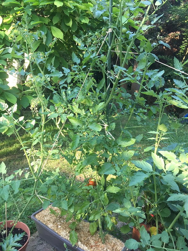 J'avais planté en jardiniere 2 pied de tomates cerises, un rouge et l'autre orange en forme de poire
