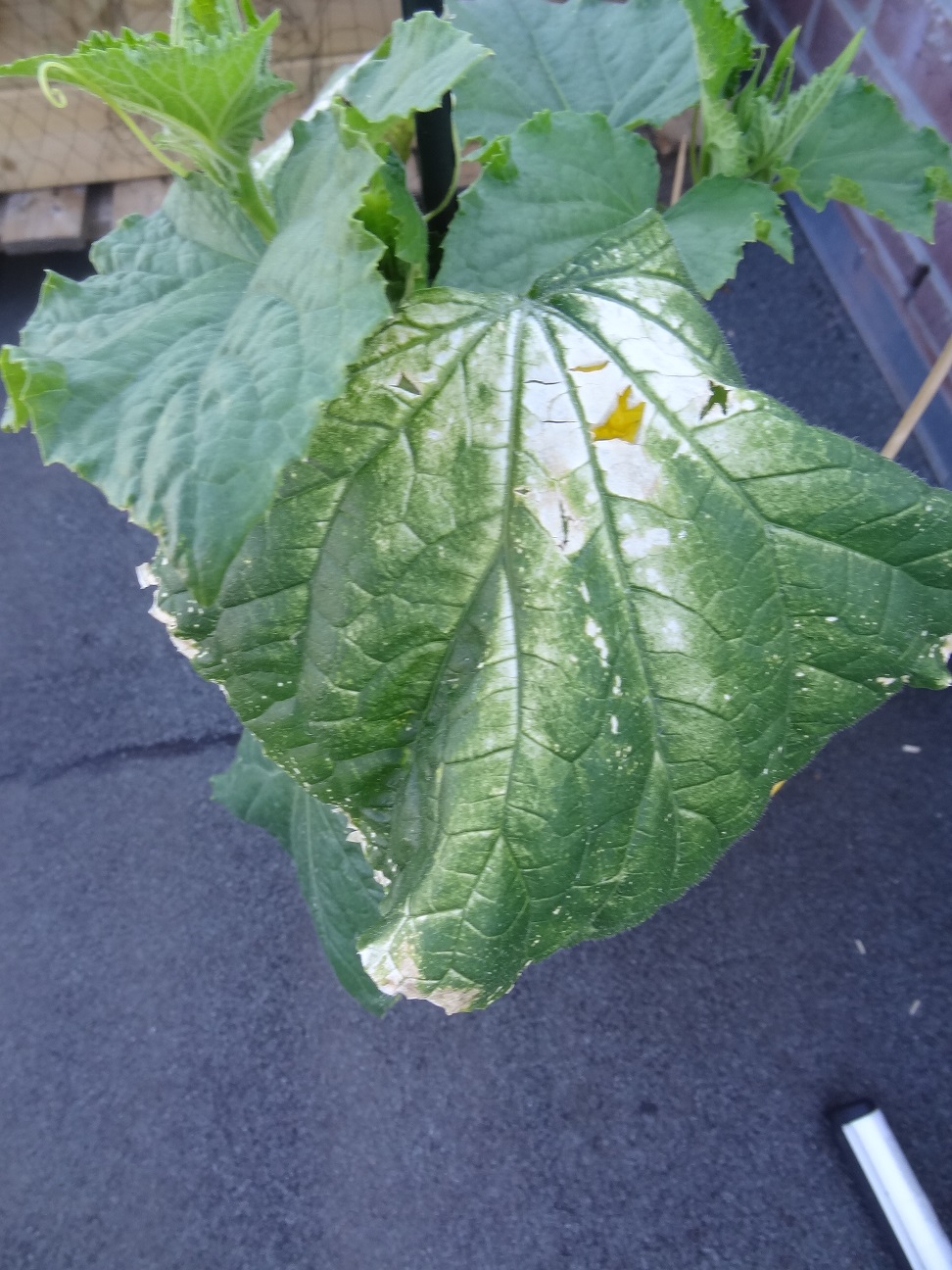 1) Je pense qu'il a été attaqué par l'oidium il y a un peu plus d'une semaine. Je l'ai pulvérisé avec un mélange lait/eau 2/3 fois et ca m'a l'air stabilisé. Ma question maintenant est de savoir si je dois vraiment couper les deux feuilles abimées comme celle ci. Je n'ai pas envie de le stresser pour rien.. 2) Plus compliqué je pense, il y a mnt 2 bonnes semaines je l'ai coupé au dessus de la 4ème feuille. Du coup, il a bien commencé à faire 2 voir meme 3 ramifications et des fruits.. Le problème, c'est qu'il y a plusieurs fruits à chaque aisselle des feuilles.. Si tout pousse à maturité, je vais me retrouver avec 50 concombres.. ce qui je pense est impossible.