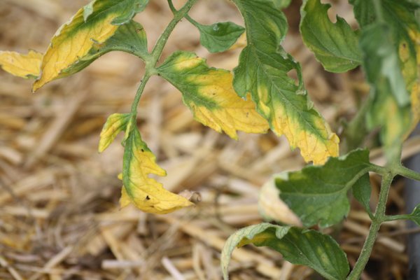 J'ai quelques pieds de tomates qui ont un problème sur les feuilles du bas. Voici quelques photos.