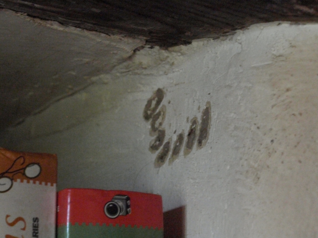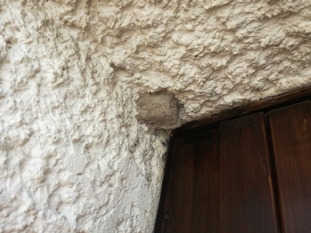mais sur le mur, les traces de leurs loges de pisé. (environ 13x4 mm)