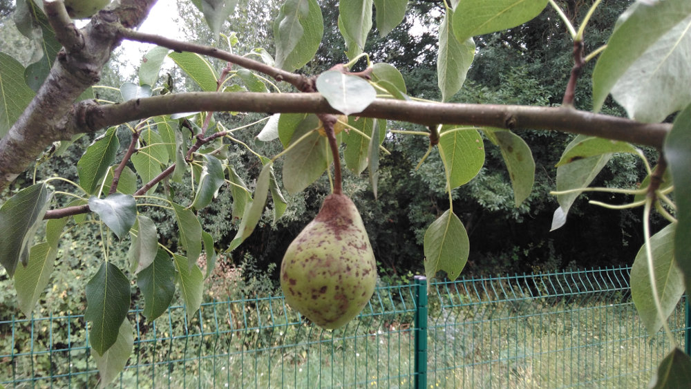 j'ai un poirier qui a sûrement été planté il y a quelques années. L'été dernier, il n'a rien donné et cette année, j'ai quelques poires, mais elles n'arrivent pas à maturation et certaines feuilles ont l'air attaquées.