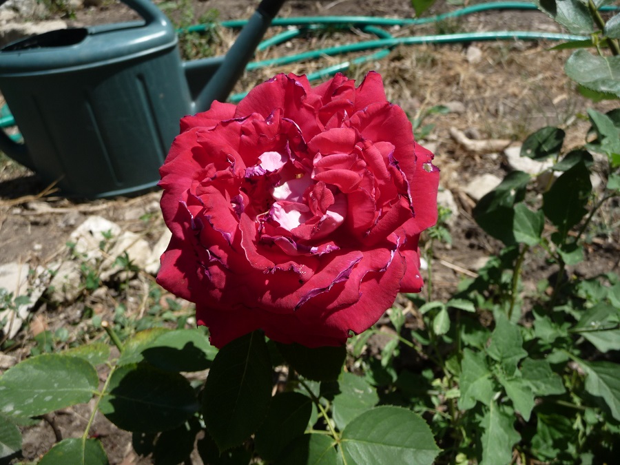 Voici une belle rose c'est un rosier planté ce printemps , J'ai planté des rosiers un peu au hasard sans même me soucier de savoir si ils étaient remontants ou non (j'en assumerai les conséquences ). Celui ci a été planté ce printemps . Il a déjà fait quelques roses et là il recommence à fleurir....une seule fleur mais quel spectacle....