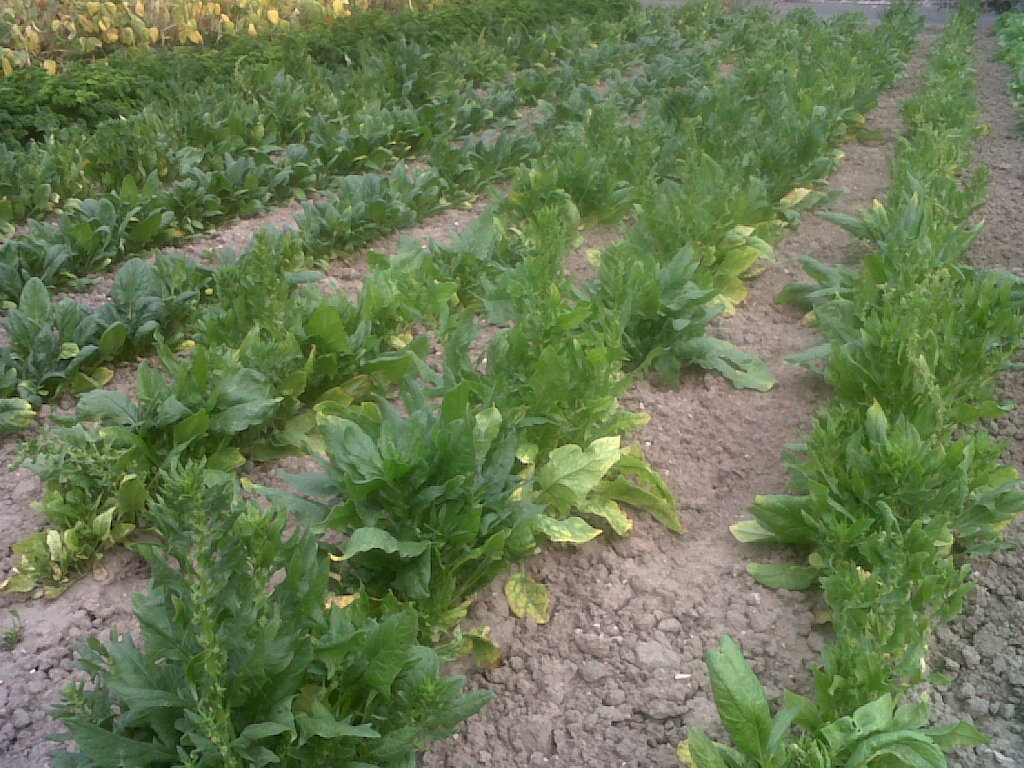 3 routes d'épinard  sur l'emplacement des pommes de terre