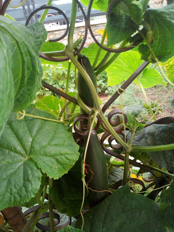 J'avais semé des potimarrons, au final je ne sais pas ce que c'est, une grosse courgette orange ou un potimarron vert?