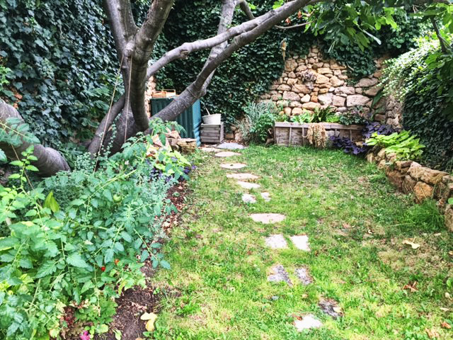 J'ai également la chance (décidément!) d'avoir un beau figuier au fond du jardin qui procure un ombrage tout l'été. Naturellement, pas grand-chose ne poussait dans cette zone avant mon arrivée il y a 2 ans, principalement du lierre et du mouron.