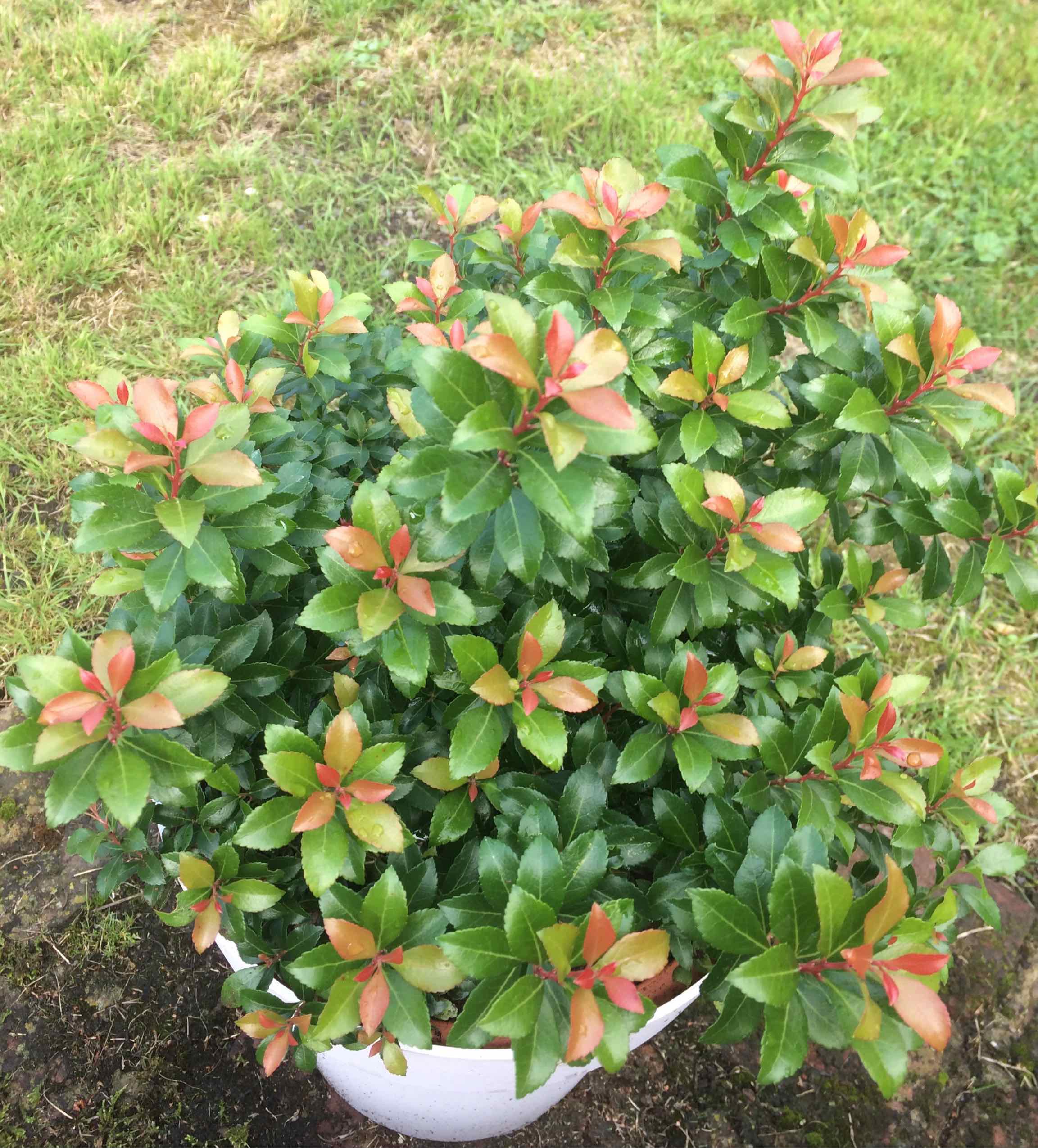 Ça pourrait être la variété naine du Photinia Xfraseri...