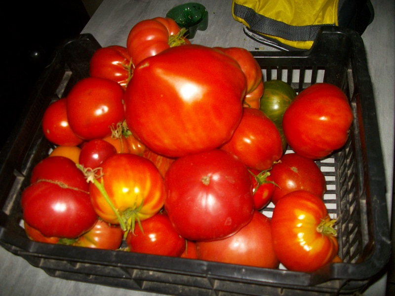 Axel vient de récolter fin de journée une jolie caisse ! Avec de très belles tomates, dont une de 667 grammes. De bon résultats cette année. j'ai étêté les variétés mi-saison. je laisse les tardives, arraché les précoces et déterminé. bonne fin de saison Rémy ! bonne continuation à tous