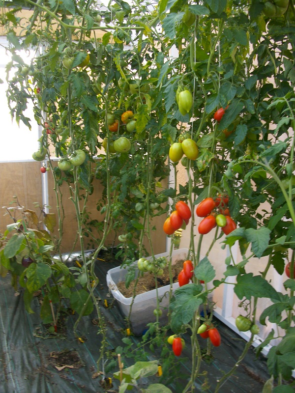 toujours des tomates dans la petite serre. papa a bien fait le vide, mais bon, il en reste des belles des "elalouni" surprise