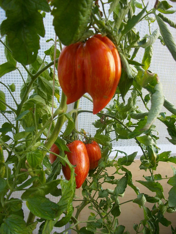 Je le croyait perdu. Je l'ai déterré puis installé à l'extérieur dans un carré et là il a fait un festival de fruits. Il donne encore il y a encore une dizaine de fruits de belle taille qui j'espère auront le temps de mûrir. J'ai déjà arraché la majorité des plants qui étaient atteints du mimile mais lui résiste bien.Cette tomate reviendra l'an prochain. Merci pour les graines. Ce fut une belle découverte.