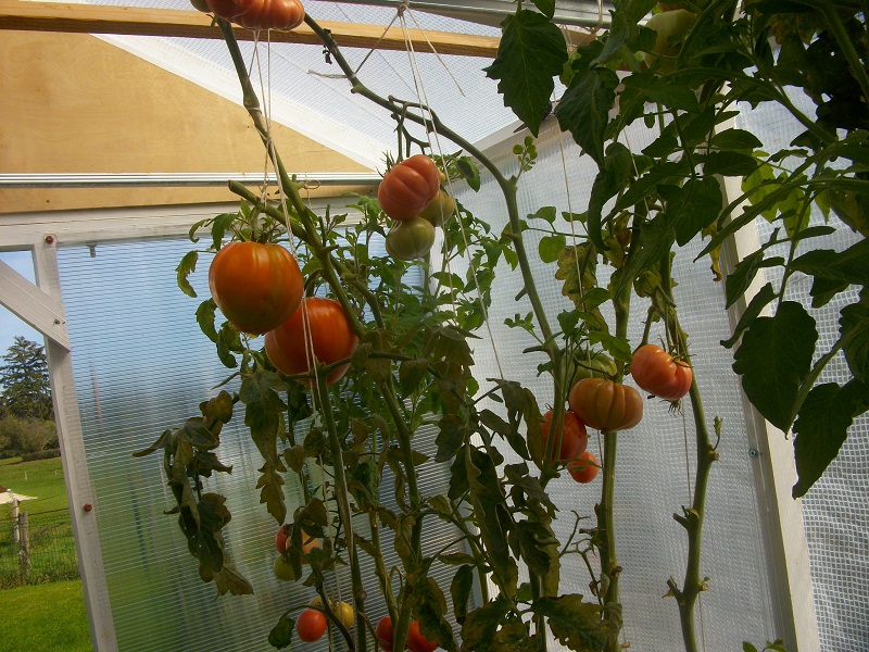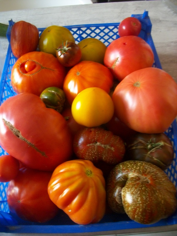 Ici j'ai eu le meilleur et le pire. Avec la période de froid et humide de mai puis les fortes chaleurs de l'été (près de 50° sous serre) puis à nouveau un temps en dents de scie les tomates sous serre n'ont pas supporté. Les plants n'ont pas grandit, les fruits sont restés petit.