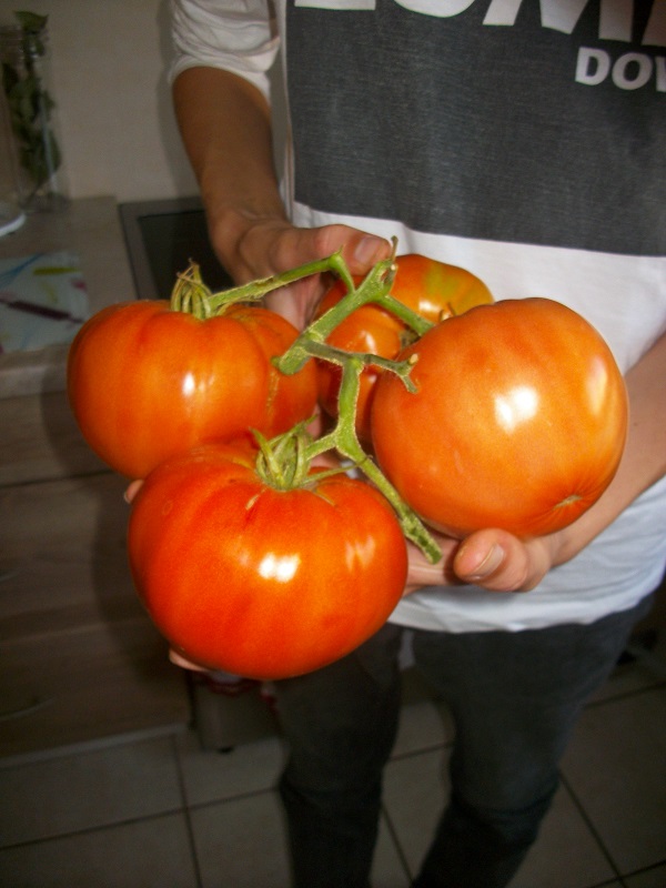 septembre: grappe de la très belle " tomate côte saint -andré" cueillie cet après-midi