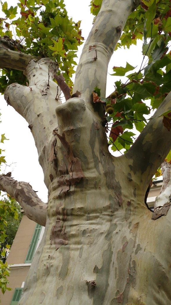 -L'écorce des platane desquame, c'est le cycle normal de renouvellement de l'écorce à la fin de l'été et à l'automne.