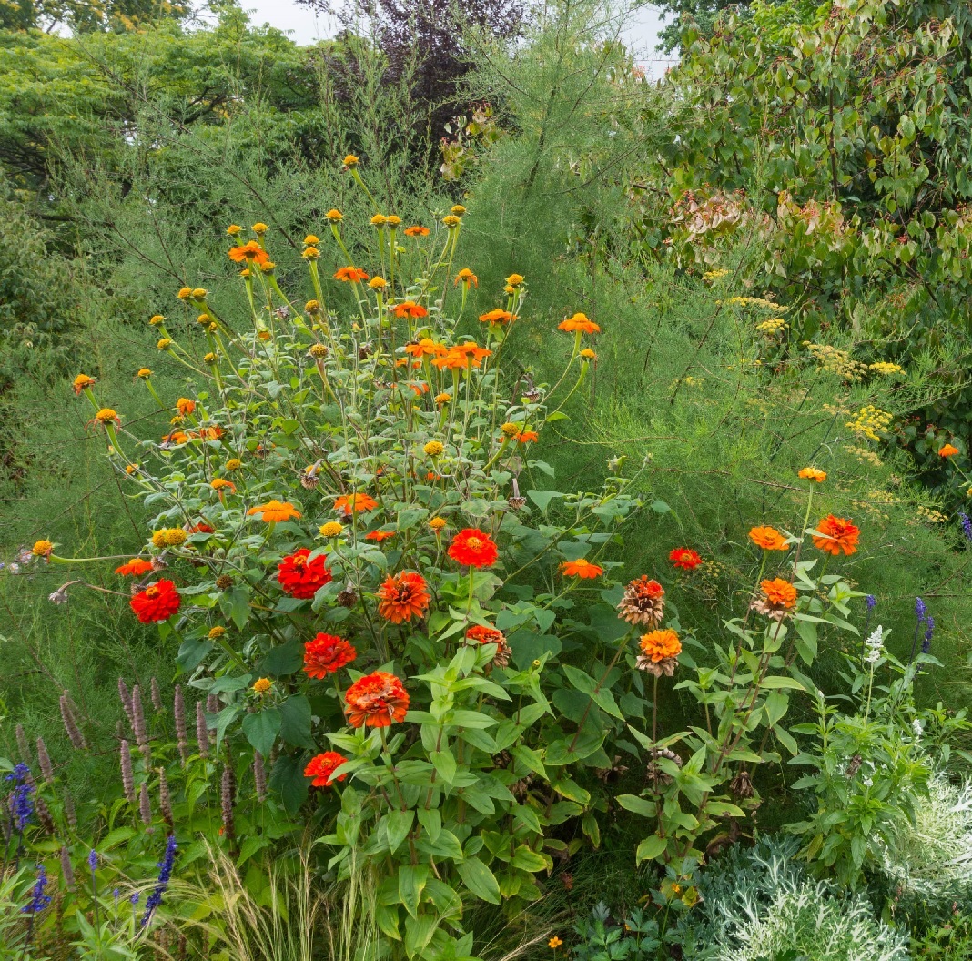 Oui, au deuxième plan Tithonia rotundifolia, dit "Soleil du Mexique".