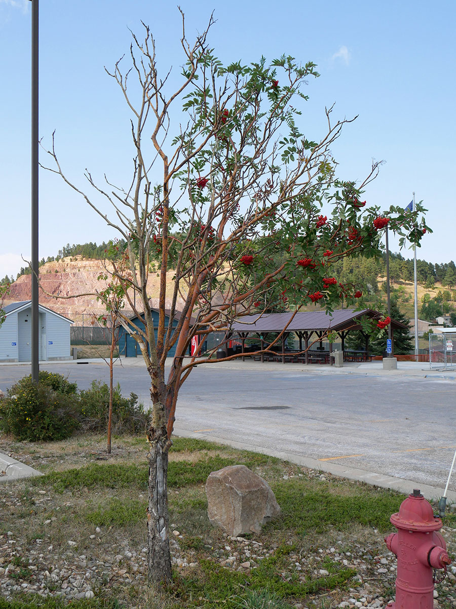 J'ai photographié le 25 août dernier à Lead (Dakota du Sud, alt. 1580 m) un arbre qui me semble être un Pyracantha, sauf que le port et les feuilles sont très différentes de ce qu'on trouve dans nos haies. C'était sur un parking donc assurément pas quelque chose de sauvage ou de typique du coin.
