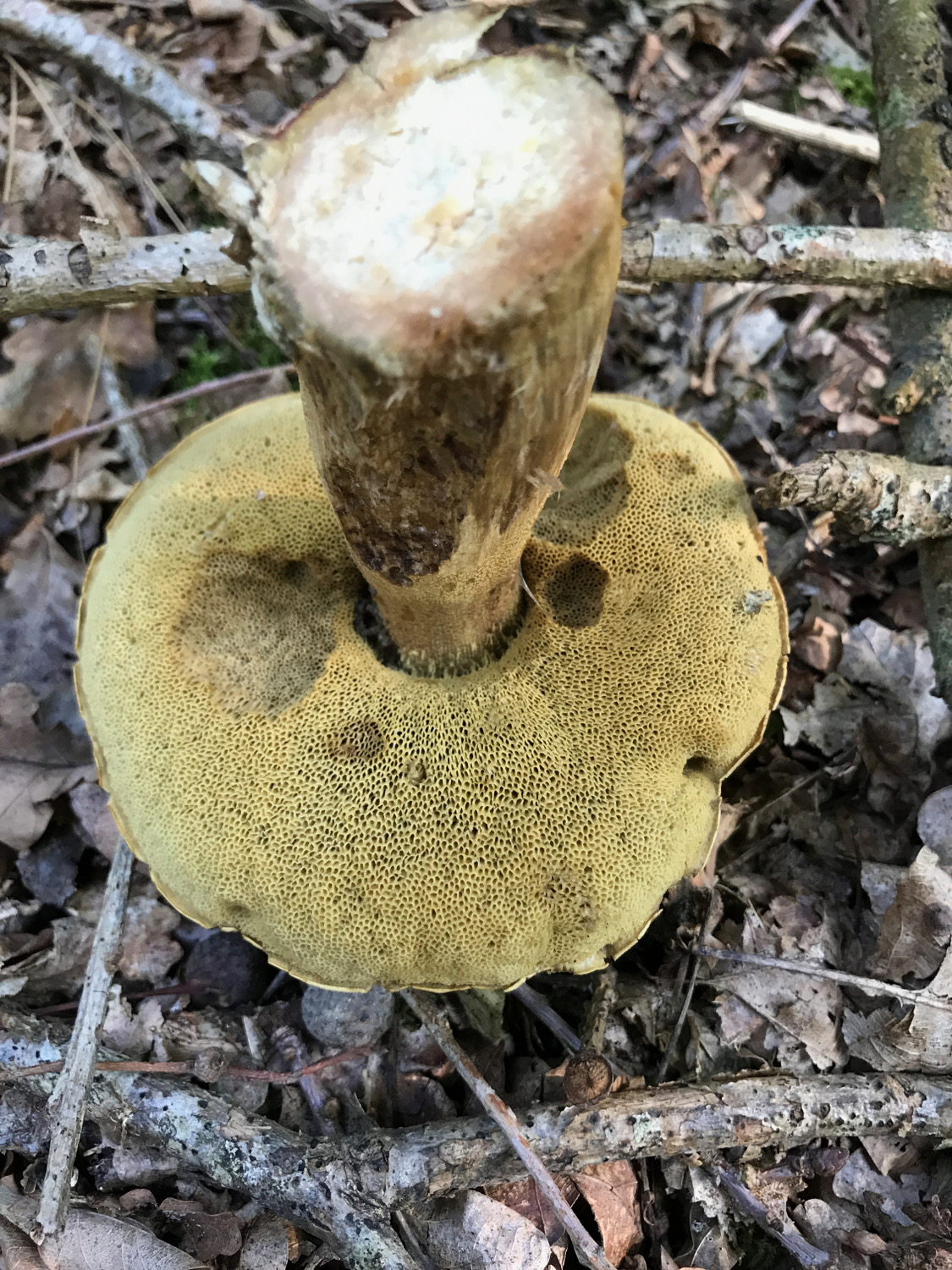j'y verrais bien un Xerocomus porosporus , malheureusement le pied de ce champi a été coupé (ne jamais faire cela pour une identification).