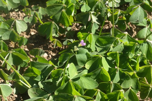 Vivace bulbeuse tapissante, rustique et robuste, surtout cultivée en plante ornementale ... c'est le "faux trèfle à 4 feuilles".