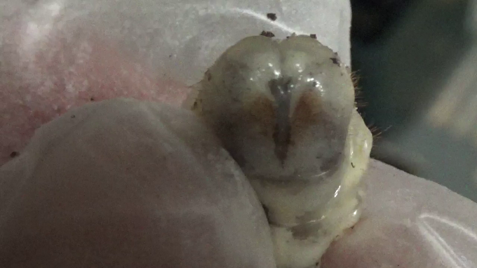 C'est pas très sain de triturer une bestiole avec des gants. Surtout à cet endroit....