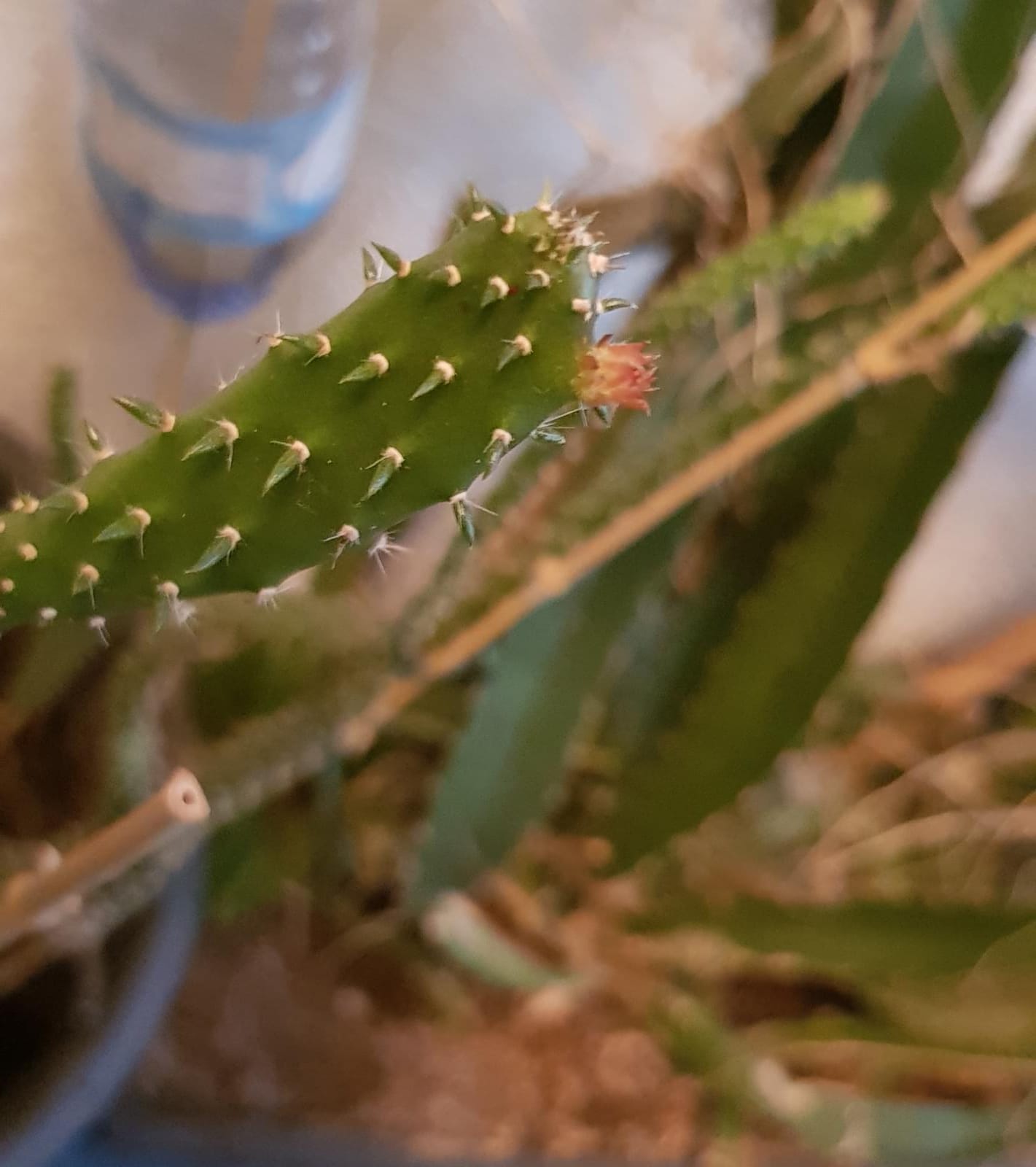 Presque quatre années plus tard.Pour commencer celui d'une figue de barbarie rapportée de voyage. On peut déjà apercevoir les piquants de cette plante.