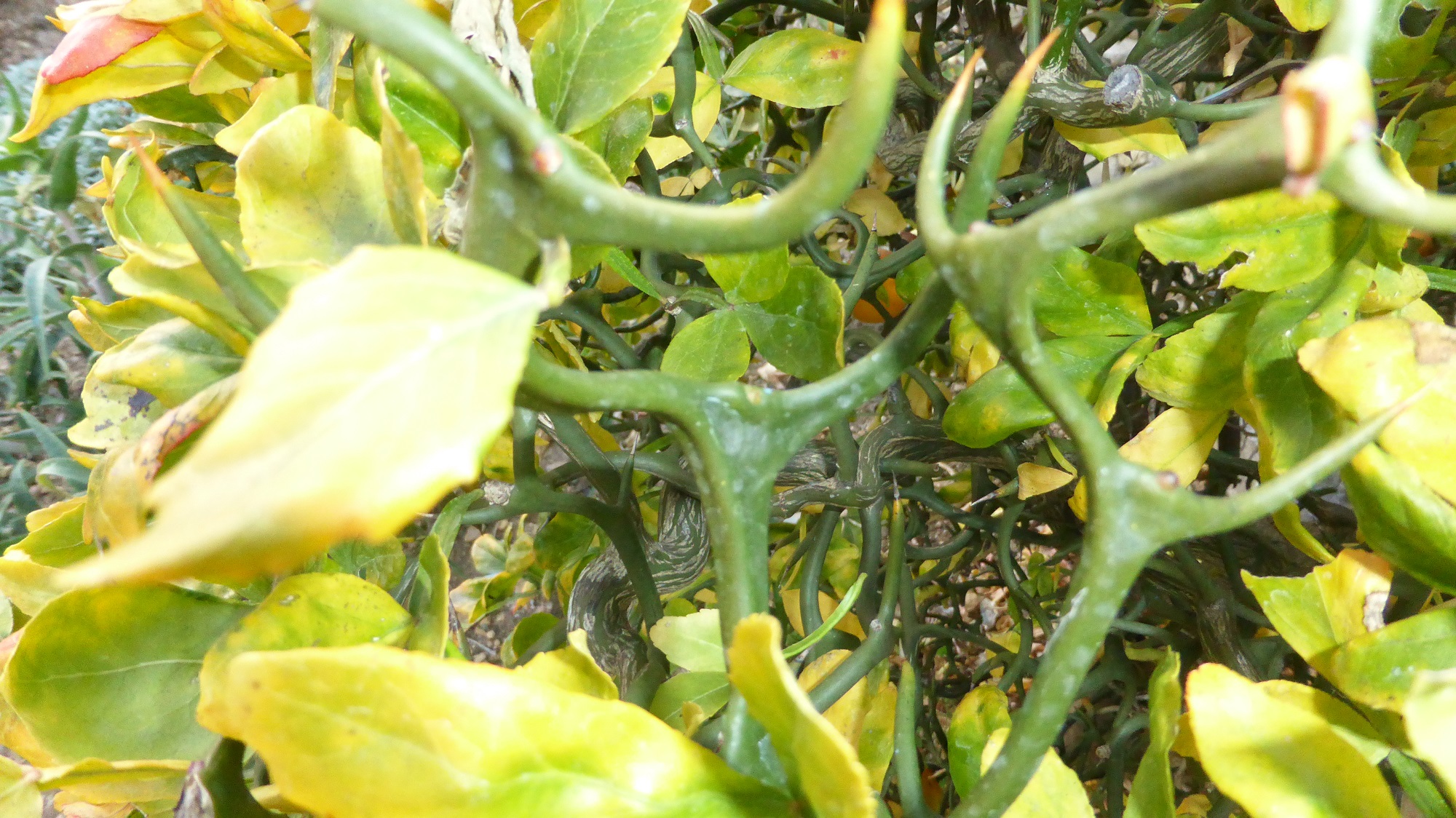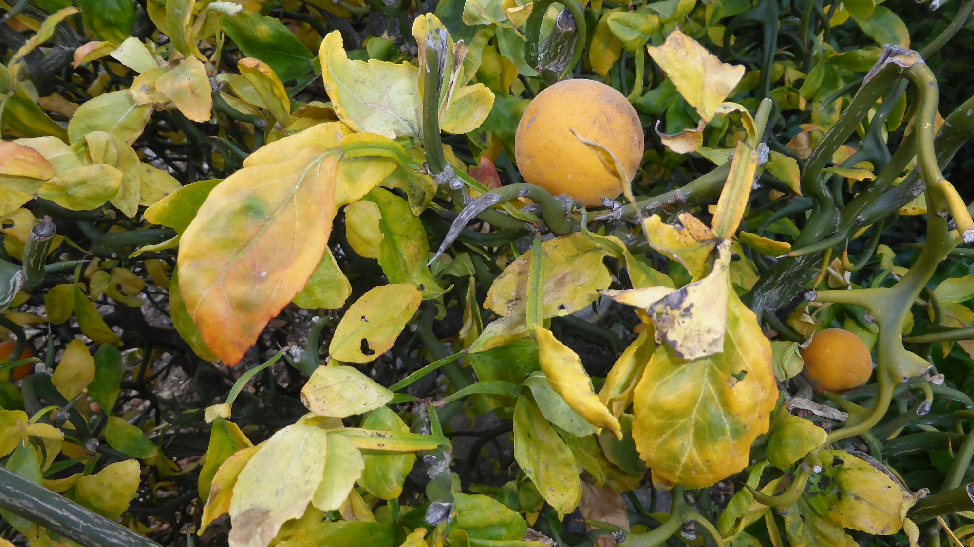 Car c'est l'exception chez les agrumes, ils sont caducs. Ils vont d'ailleurs totalement perdre leurs feuilles dans quelques semaines.