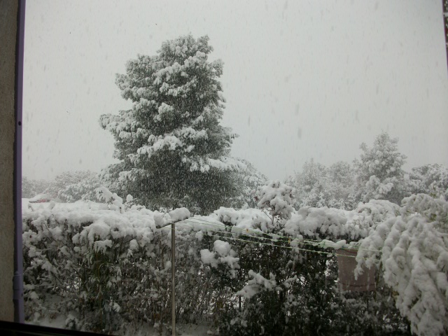 Nous c'était hier pour la neige, grésil....Moins 1° sous le pré-haut depuis 3 jours, donc il est temps d’emmailloter les 3 citronniers, 2 clémentiniers,2oliviers, 2 lauriers roses et d'autres babioles gélives après avoir fait la dernière cueillette -40 clémentines et 4 citrons. On a mis du nylon à grosses bulles en espérant qu'il ne gèle pas trop fort sinon il faudra un chauffage....