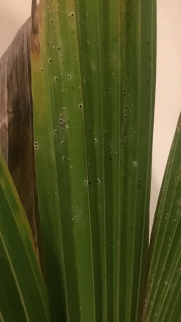 J'ai reçu en cadeau un cocotier venant de l'île de la Réunion. Je le maintiens depuis le mois de septembre et il va très bien, à l'exception du fait qu'il porte de plus en plus de petits parasites que je joins en photo. J'ai pensé à des cochenilles mais je ne suis pas sure car les petits individus sont totalement plats... Pour les sceptiques sur les possibilités à maintenir un cocotier en intérieur