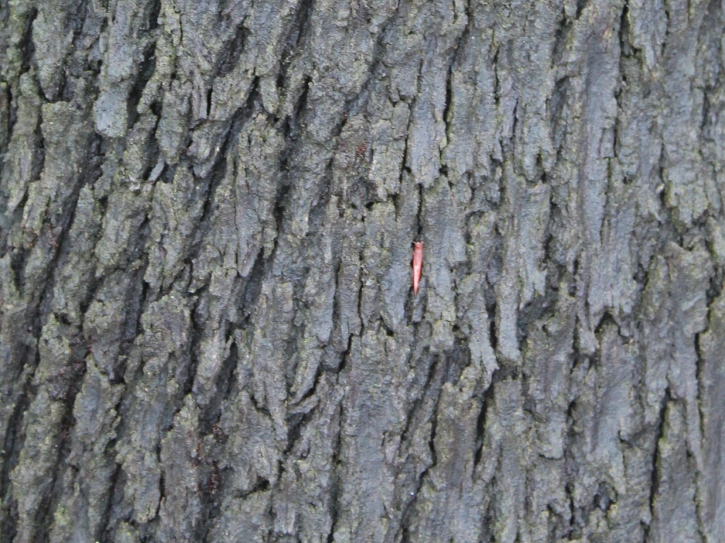 Tronc éclaté en deux dans sa prime jeunesse, puis couché au sol, longtemps après. Mais, sous son écorce noire,
