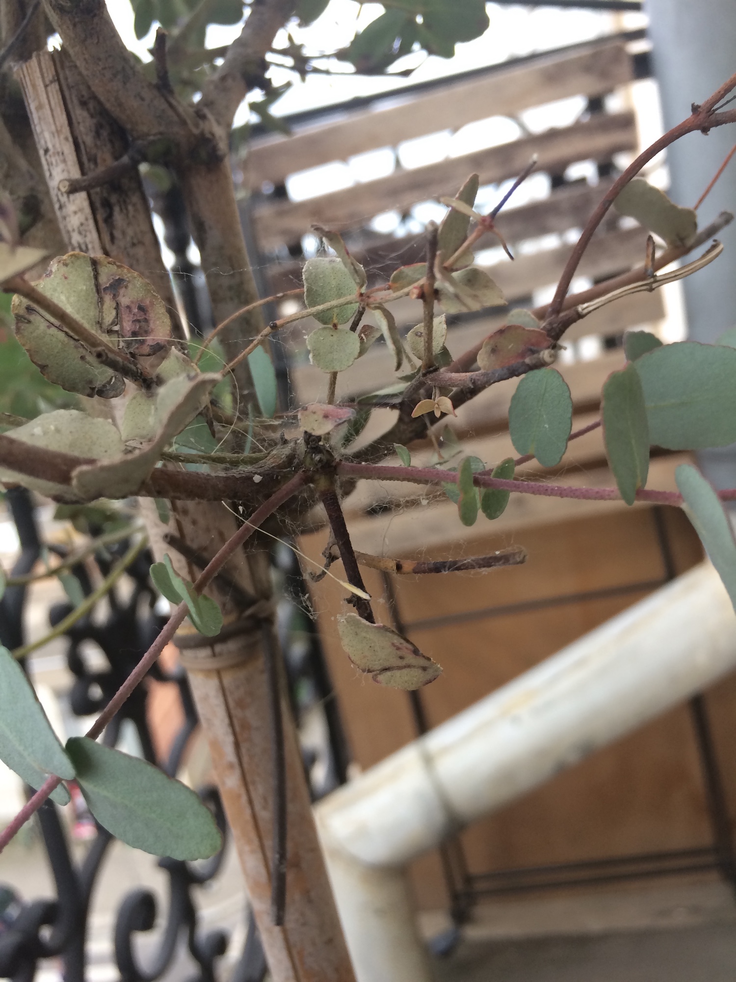 Il y a aussi des sortes de toiles d'araignées à un seul endroit, je n'ai pas l'impression que ça se propage et je ne vois aucun parasite de type araignée rouge.