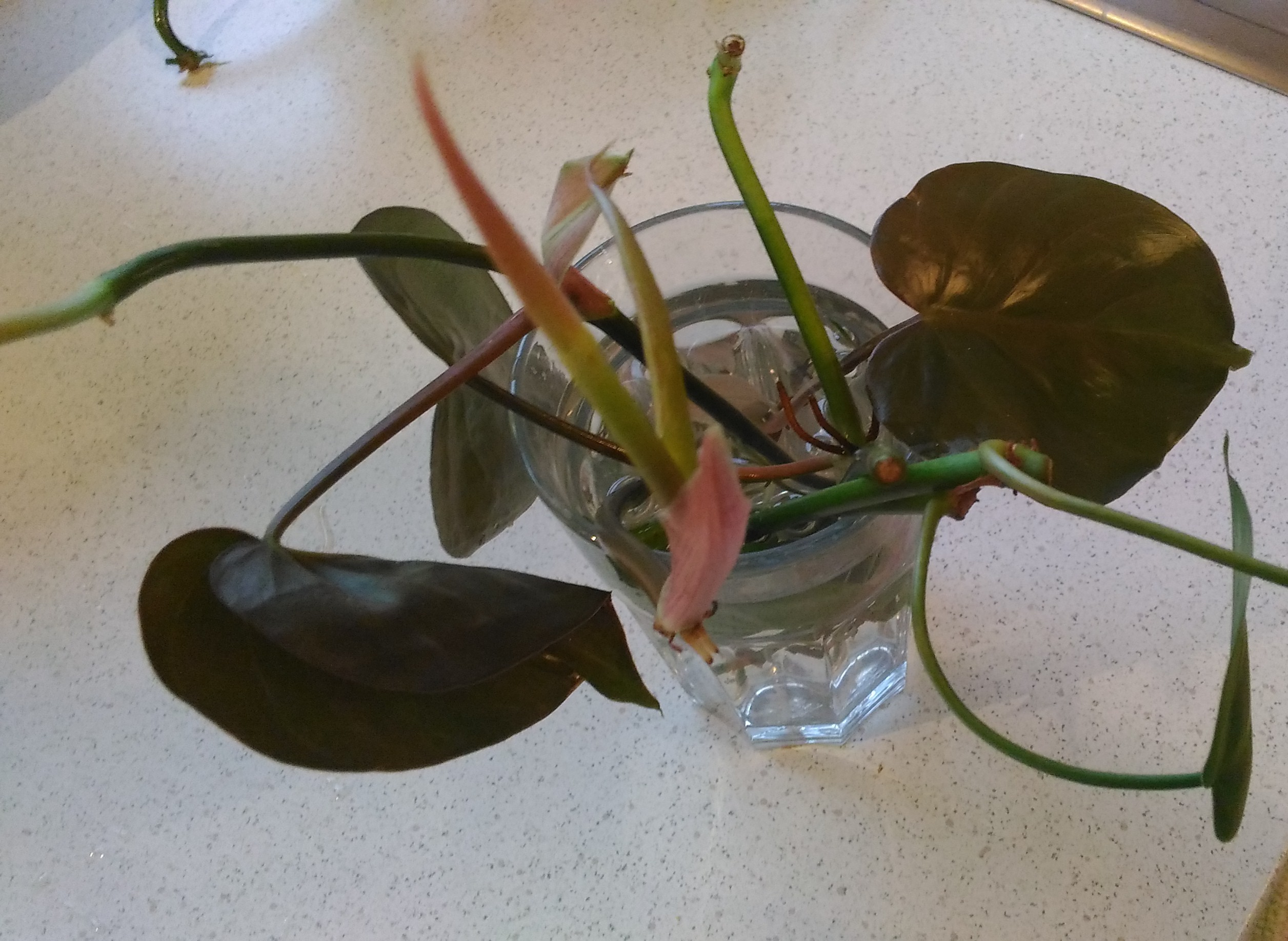 Ma première impression a été tiens, un philo rouge alors c'est sûr, j'ai cherché sur le net le nom un peu plus savant mais pour moi çà reste un philo rouge qui grimpe quand il a un support et tombe s'il n'en a pas.